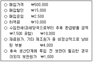 (주)한국의 다음 재고자산 관련 자료를 이용하여 구한 재고자산의 취득원가는?