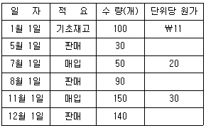 다음은 계속기록법을 적용하고 있는 (주)한국의 20×1년 재고자산에 대한 거래내역이다. 선입선출법을 적용한 경우의 매출원가는?
