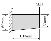 그림과 같이 직사각형 변단면을 갖는 보에서, A지점의 단면에 발생하는 최대 휨응력은? (단, 보의 폭은 20mm로 일정하다.)