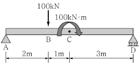 단순보의 A, D지점에서의 수직반력(RA, RD)의 크기는 각각 얼마인가?