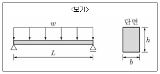<보기>와 같은 단면을 가진 단순보에 등분포하중(ω)이 작용하여 처짐이 발생하였다. 단면 높이 h를 2h로 2배 증가하였을 경우, 보에 작용하는 최대 모멘트와 처짐의 변화에 대한 설명으로 가장 옳은 것은?