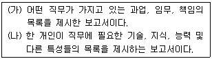직무분석의 결과로서 다음 [보기]의 (가)와 (나)에 해당하는 것을 순서대로 바르게 나열한 것은 무엇인가?
