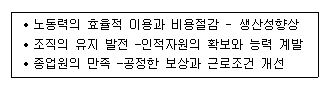 다음과 같은 사항이 중심적 목적이 되는 관리영역은?