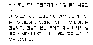 다음 내용이 설명하고 있는 LAN의 매체 접근 제어방식은?