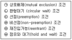 교착상태 발생의 필요조건에 해당하는 것으로 나열된 것은?