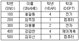 다음과 같은 테이블이 있다. 이 릴레이션의 차수는?