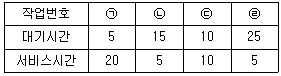 HRN 스케줄링 기법 사용 시 우선순위가 가장 낮은 작업 번호는?