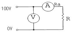 다음 그림과 같은 직류회로에서 입력 전압이 100[V], 전류계의 내부저항(Ra)이 10[Ω]이고, 부하(R)가 990[Ω]일 때, 부하에서 소비되는 전력은 얼마인가?