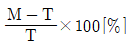 측정값을 M, 참값을 T, 오차를 ε 라 할때 백분율 오차는?