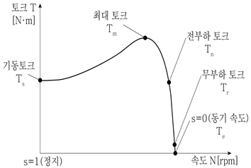 그림과 같은 3상 유도전동기의 토크 속도 특성 곡선에서 정상 운전 범위로 옳은 것은?