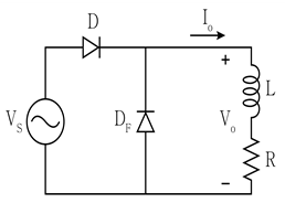 그림과 같은 단상 다이오드 정류회로에 대한 설명으로 옳지 않은 것은? (단, 정류회로는 정상상태이며 시정수 L/R 은 충분히 크다)