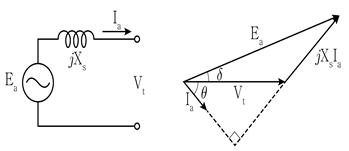 다음의 동기기 등가회로와 벡터도에 대한 설명으로 옳지 않은 것은? (단, Xs는 동기리액턴스이다)