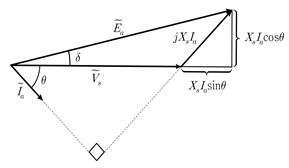 그림과 같은 동기발전기의 페이서도에 대한 설명으로 옳지 않은 것은?