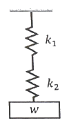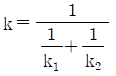 그림과 같은 스프링을 설치하였을 경우 합성 스프링 상수 k를 구하는 식으로 옳은 것은? (단, k1과 k2는 각각의 스프링 상수이다.)