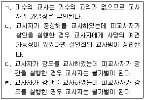 교사범에 대한 설명으로 옳은 것(○)과 옳지 않은 것(×)을 순서대로 바르게 나열한 것은? (다툼이 있는 경우 판례에 의함)(순서대로 ㄱ, ㄴ, ㄷ, ㄹ)