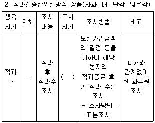 농업재해보험 손해평가요령 “[별표 2] 농작물의 품목별ㆍ재해별ㆍ시기별 손해수량조사방법”의 일부이다. ( )에 들어갈 내용으로 옳은 것은?