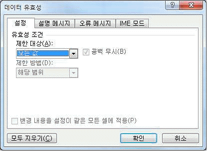 다음 중 [데이터 유효성] 대화상자의 [설정] 탭에서 '제한 대상'목록에 해당하지 않는 것은?