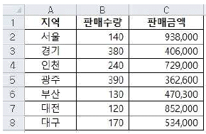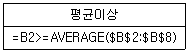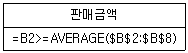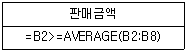 다음 중 아래 시트의 [A1:C8] 영역에 고급 필터 기능을 이용하여 판매수량이 전체 판매수량의 평균 이상의 데이터를 추출하기 위한 조건으로 옳은 것은?