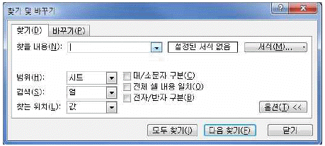다음 중 [찾기 및 바꾸기] 대화상자의 각 항목에 대한 설명으로 옳지 않은 것은?