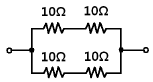 그림과 같이 10Ω 저항 4개를 연결하였을 때 A-B 간의 합성 저항은 몇 Ω인가?