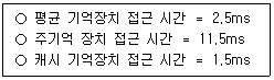다음과 같이 접근 시간이 주어졌을 때, 캐시 적중률은? (단, 캐시 적재 시간과 캐시 적중 여부 검사 시간은 제외한다)