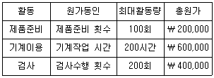 (주)한국은 활동기준원가계산제도를 채택하고 있으며, 제조 활동과 관련된 자료는 다음과 같다.