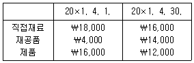 (주)한국의 20×1년 4월 초와 4월 말 재고자산 금액은 다음과 같다.