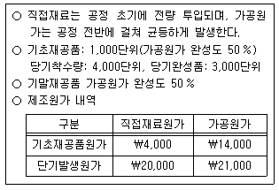 (주)한국은 종합원가계산을 적용하고 있으며, 물량흐름과 원가관련정보는 다음과 같다.