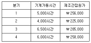 다음은 20×1년 (주)한국의 기계가동시간과 제조간접원가에 대한 분기별 자료이다.