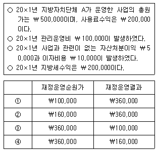 다음은 지방자치단체 A의 20×1년 재무제표 작성을 위한 자료이다. (단, 아래 이외의 다른 거래는 없다.) 그림참조 c1 20×1년 지방자치단체 A의 재정운영표상 재정운영순원가와 재정운영결과를 바르게 연결한 것은?