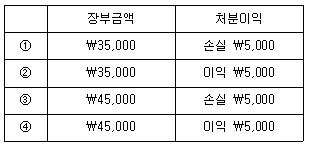 (주)한국은 20×1년 10월 1일 기계장치를 ₩80,000(내용연수 5년, 잔존가치 ₩5,000, 연수합계법, 월할 상각)에 취득하였다. 동 기계장치를 20×3년 3월 31일 ₩40,000에 처분할 경우, 처분시점의 장부금액과 처분손익을 바르게 연결한 것은? (단, 기계장치는 원가모형을 적용하고 손상차손은 발생하지 않았다.)