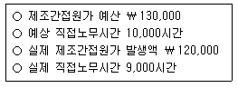 (주)한국은 정상개별원가계산을 적용하고 있으며, 직접노무시간을 기준으로 제조간접원가를 예정배부하고 있다. 다음 자료를 이용할 경우, 당기 말 제조간접원가 과소 또는 과대 배부액은?