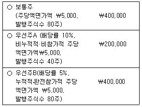 모든 주식은 영업개시와 동시에 발행하였으며, 그 이후 아직 배당을 한 적이 없다. 20×3년 초 ₩100,000의 배당을 선언하였다면 배당금 배분과 관련하여 옳은 것은?