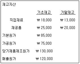 (주)한국은 단일제품을 생산하고 있다. 20×1년 자료가 다음과 같을 때, 당기 직접재료 매입액과 당기에 발생한 직접노무원가는?(순서대로 직접재료 매입액, 직접노무원가)