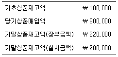 다음은 도ㆍ소매 기업인 (주)한국의 상품과 관련된 자료이다. 정상적 원인에 의한 재고감모손실은 매출원가로, 비정상적 감모손실은 기타비용으로 보고하는 경우 (주)한국이 당기에 인식해야 할 매출원가는? (단, 재고감모손실의 30%는 비정상적 원인, 나머지는 정상적 원인에 의해 발생되었다)
