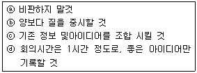 보기의 설명 중 브레인스토밍 법의 규칙으로 옳은 것은?