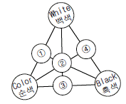 비렌의 색삼각형에서 ①~④의 번호에 들어갈 용어가 순서대로 바르게 배열된 것은?