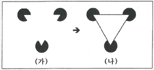게슈탈트의 시지각의 원리 중에서 그림(가)를 보고 그림(나)와 같이 지각하려는 경향으로 가장 옳은 것은?
