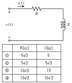 그림의 직렬회로에서 저항 R[Ω]과 리액턴스 X[Ω]는?(단, v(t)=40sin(120πt)[V]이고, i(t)=2sin(120πt-30°)[A]이다)