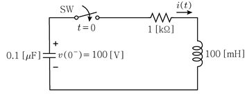 그림의 회로에서 스위치 SW를 t=0에서 닫았을 때, 전류 i(t)[A]의 자연 응답 특성은?