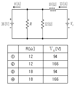 그림의 회로에서 저항 [Ω]과 전압원 [V]는?