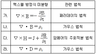 시변 전자계 시스템에서 맥스웰 방정식의 미분형과 관련 법칙이 서로 옳게 짝을 이룬 것을 모두 고른 것은? (단, E는 전계, H는 자계, D는 전속밀도, J는 전도전류밀도, B는 자속밀도, ρv는 체적전하밀도이다)