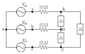 다음 평형(전원 및 부하 모두) 3상회로에서 상전류 IAB [A]는? (단, ZP =6+j 9[Ω], Van =900∠0°[V]이다)