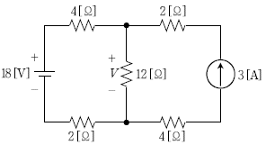다음 회로에서 12[Ω] 저항의 전압 V[V]는?