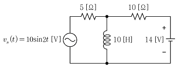 그림의 회로에서 인덕터에 흐르는 평균 전류[A]는? (단, 교류의 평균값은 전주기에 대한 순시값의 평균이다.)