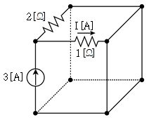 그림의 회로에서 1[Ω]에 흐르는 전류 I[A]는?