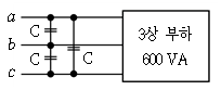 그림과 같이 3상 평형전원에 연결된 600[VA]의 3상 부하(유도성)의 역률을 1로 개선하기 위한 개별 커패시터 용량 C[μF]는? (단, 3상 부하의 역률각은 30°이고, 전원전압은 Vab(t)=100√2sin100t [V]이다)