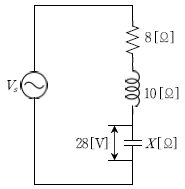 다음 회로의 역률이 0.8일 때, 전압 Vs[V]와 임피던스 X [Ω]는? (단, 전체 부하는 유도성 부하이다) (순서대로 Vs[V], X[Ω])