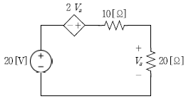 독립전원과 종속전압원이 포함된 다음의 회로에서 저항 20 [Ω]의 전압 Va [V]는?