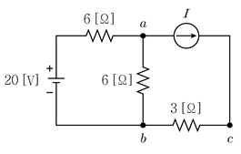 그림의 회로에서 절점 a와 b 사이의 전압 Vab가 4[V]일 때, 절점 a와 c 사이의 전압 Vac[V]는?